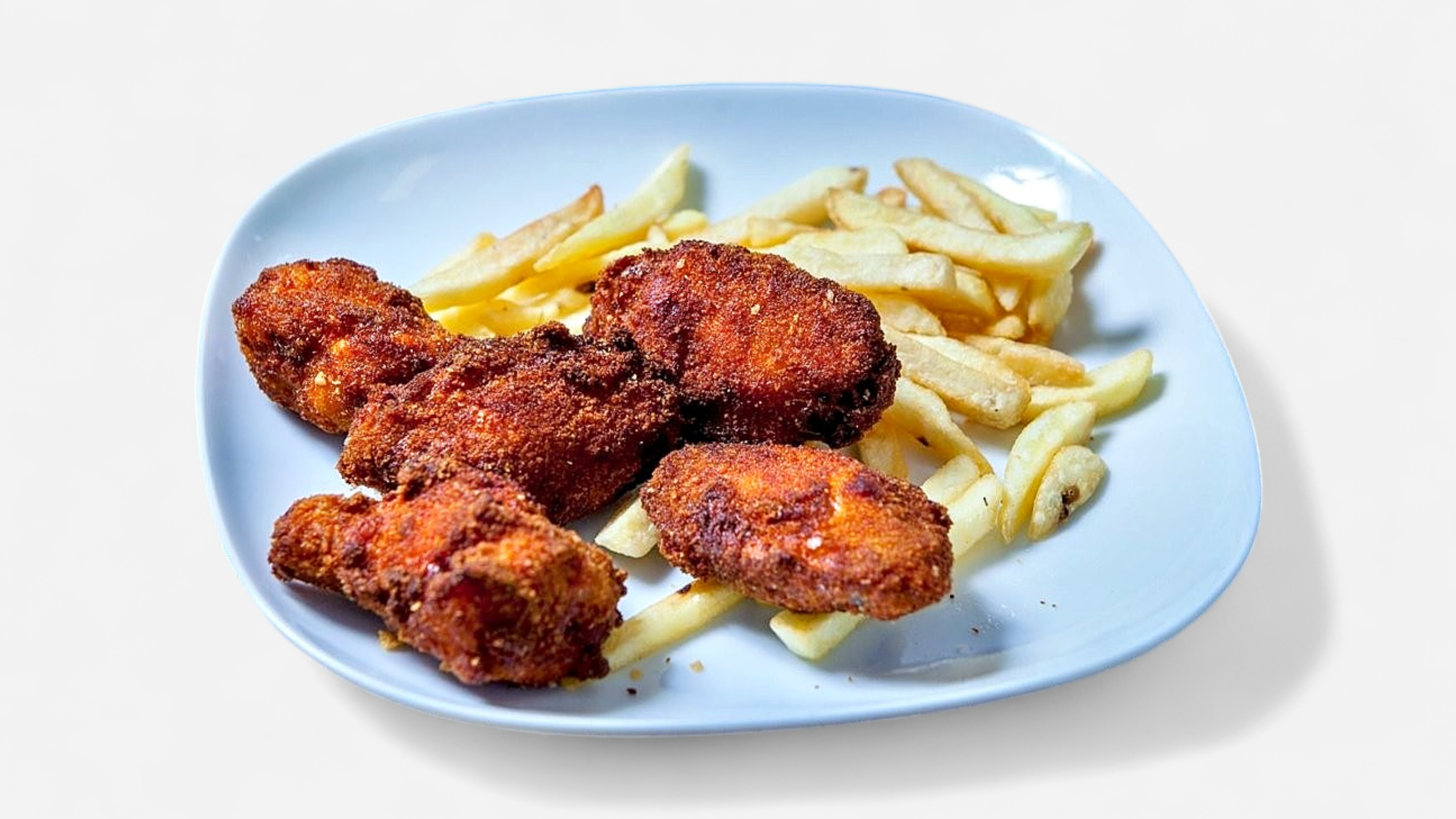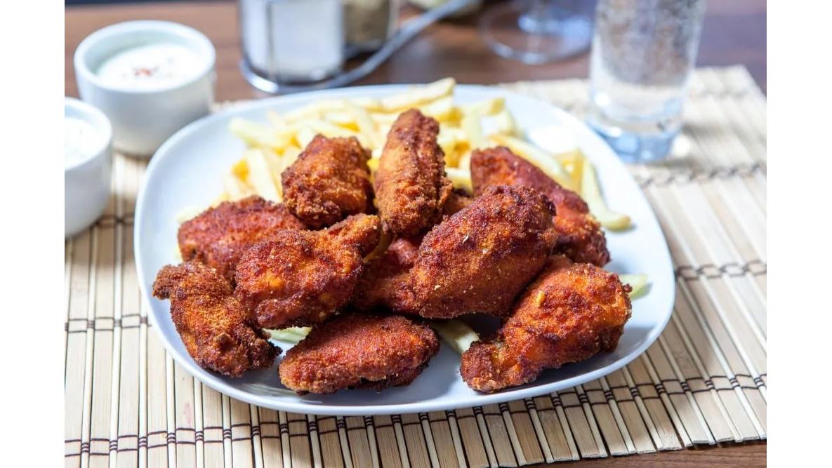 - Hozzávalók: 5 db csípős szárny, hasábburgonya, 1 db fokhagymás szósz, kb. 430 g sütés után