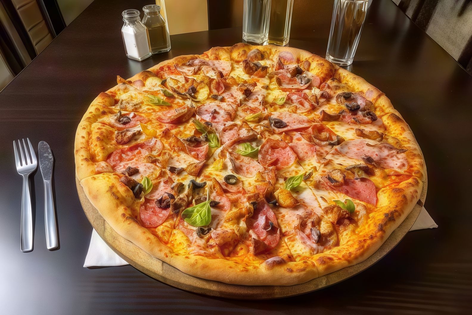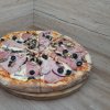 - blat pizza, sos pizza, mozzarella, ciuperci, ardei kapia, zucchini, praz