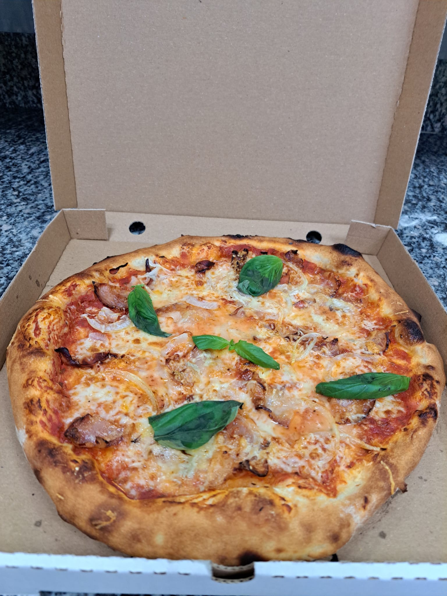 - Blat pizza, sos rosii, mozzarela, sunca, salam, kaizer, carnati, ceapa