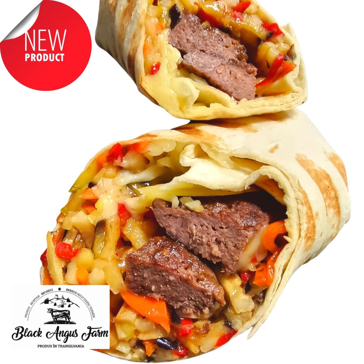 - 1 chifla hamburger, 120g carne hamburger angus, 2 felie cascaval afumat 30g,10g salata iceberg, 20g ceapa rosie, 20g sos aioli, 50g sos aloileile in sosiera, 150 g Cartofi rondele