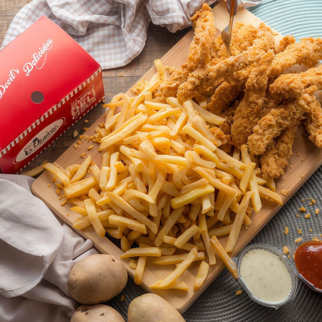 piept de pui crispy 35 buc (1500g) , cartofi pai 1000g + sos