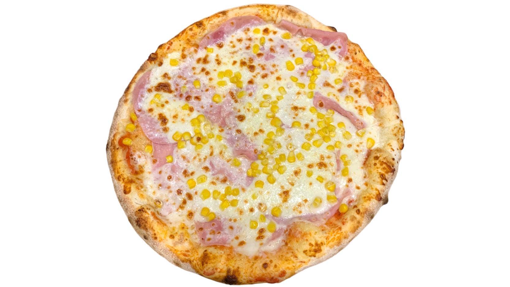 Ingrediente: sos pizza, sunca, mozzarella, porumb portie dubla (760gr) + 1 sos rosii dulce