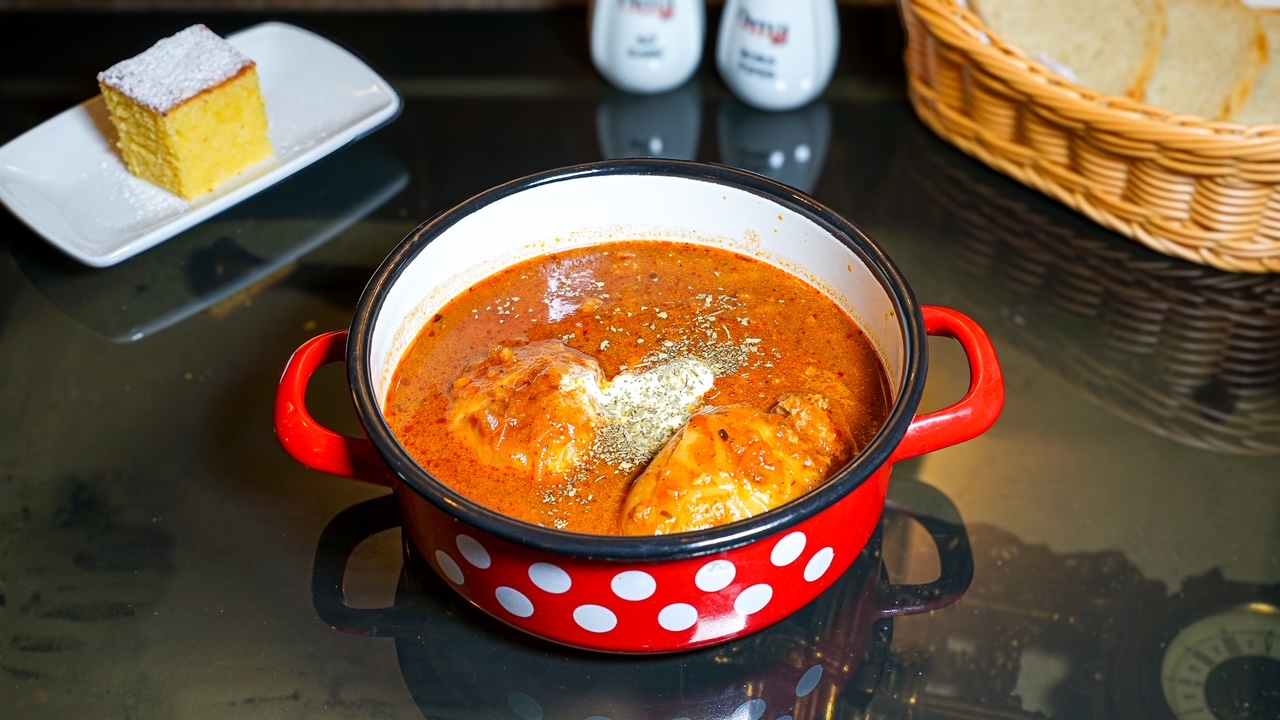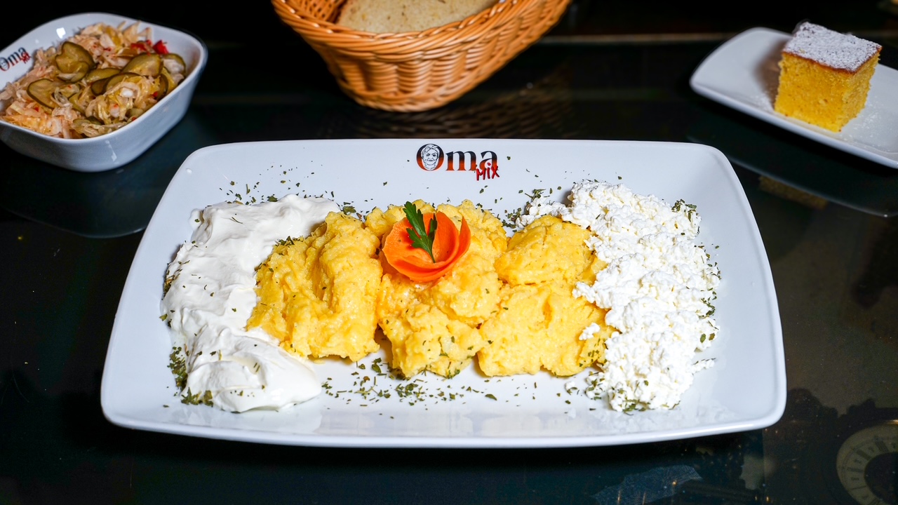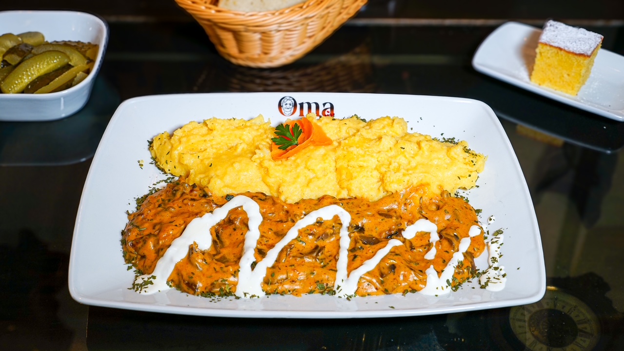 - Meniu cotlet de porc pe pat de ceapă, garnitura la alegere: mămăligă sau cartofi țărănești sau cus-cus, muratura asortata, desert